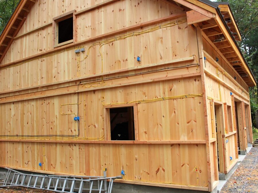 This One and A Half Story Country Barn affords the option to choose an 18′ or 20′ wide gable end, either of which can be stretched to your desired length in 12′ increments beginning with 24′ and up to and beyond a 60′ depth. The heighth from floor to the top of the peak is 19′. The 18′ One and A Half Story Country Barn was designed for use as a small barn, or living space but the possibilities are endless. Many of our customers have converted this barn into a vacation home or small studio/playroom. The 18′ One and A Half Story Country Barn features detailed handwork, as well as 8×12 mortise and tenon tie beams and large 6×8 and 8×8 posts and beams.
