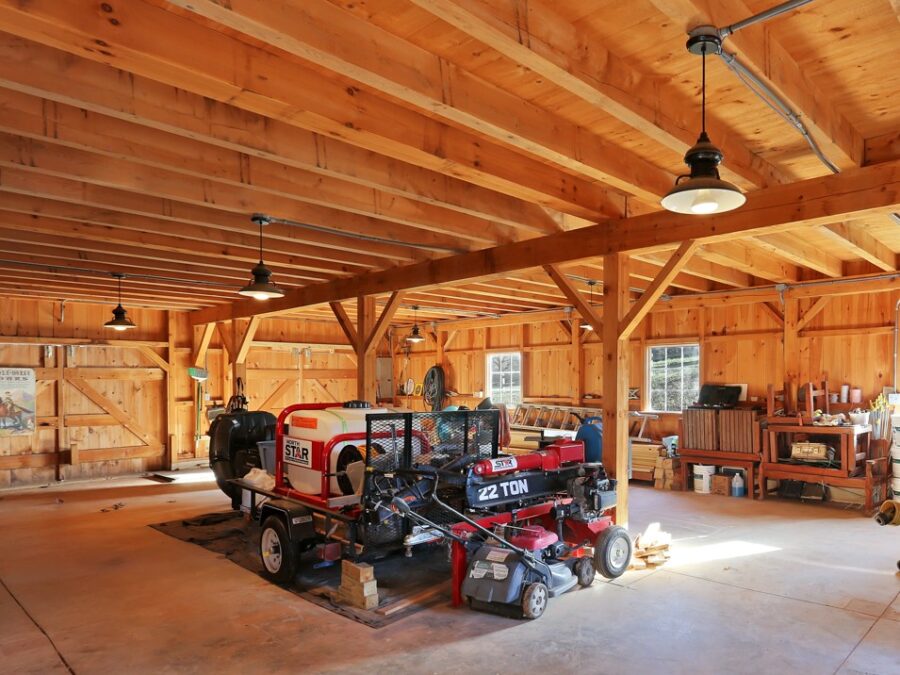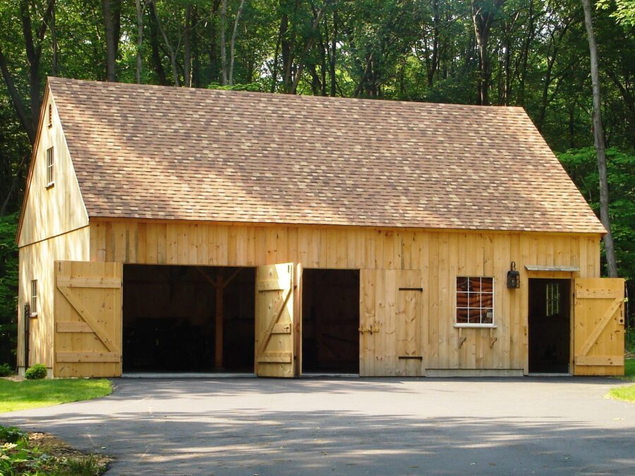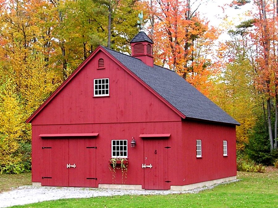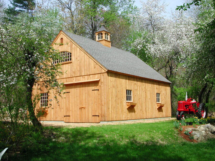 The classic New England 24′ One Story Country Barn features a 24′ wide gable end, which can be stretched to your desired length in 12′ increments beginning with 24′ and up to and beyond a 60′ depth. The heighth from floor to the top of the peak is 20′ 6″. The 24′ One Story Country Barn was designed for use as a small barn, garage, or workshop but the possibilities are endless. The 24′ One Story Country Barn features detailed handwork, an array of custom add-ons and 6×6 posts and 8×8 and 8×10 beams.